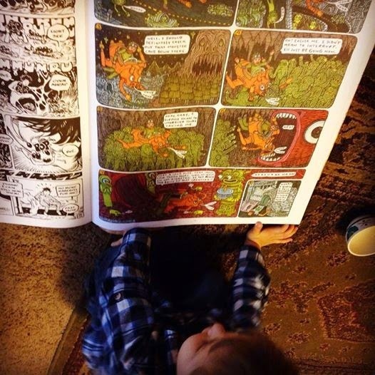 I got my contributor copy of the gigantic Winsor McCay tribute book, Little Nemo (Dream Another Dream) Published by Locust Moon. Here's my 3 year old checking it out. The book is amazing, beautifully produced and filled with contributions from some of my favorite cartoonists. I feel lucky to be a part of it. You can secure a copy of this huge, monumental book HERE.