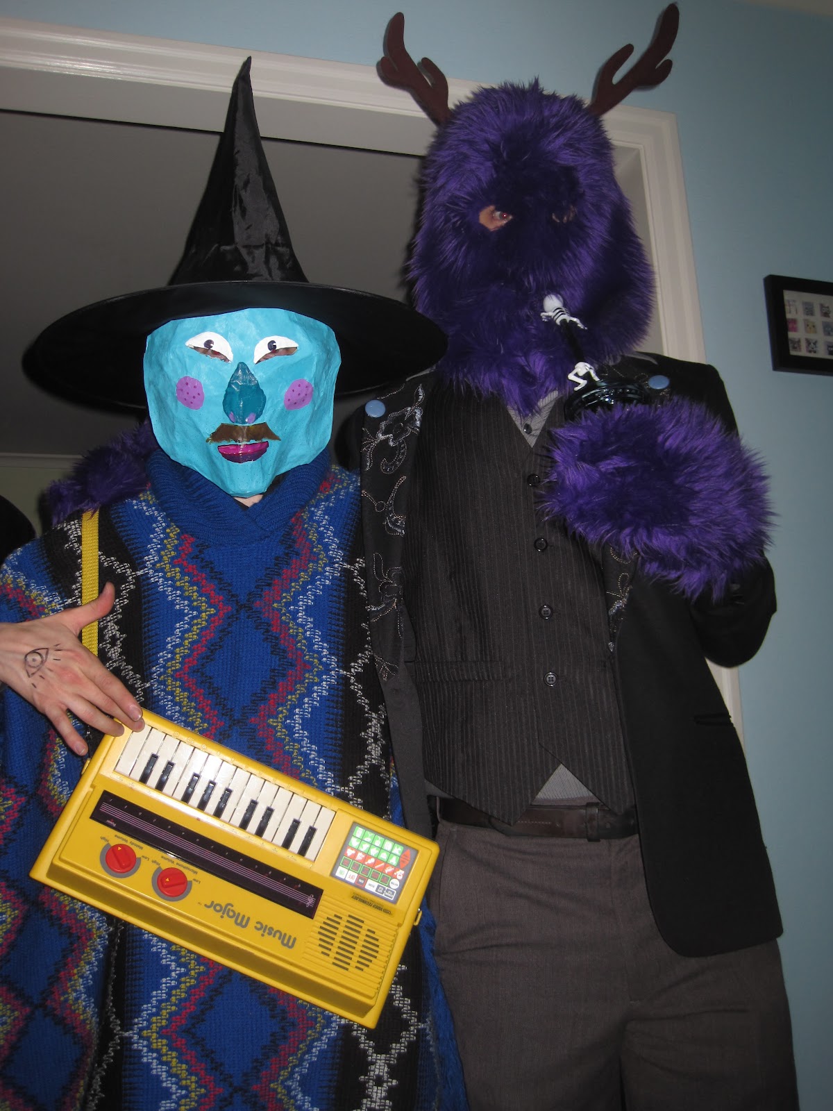 man witch and antlered purple were-thing