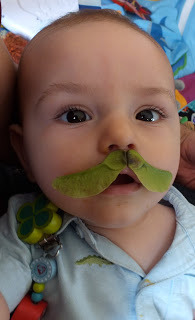 Griffin celebrates his first summer with a maple tree helicopter mustache!