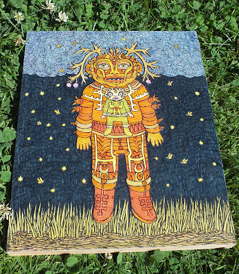 After a whirlwind adventure packing up everything I own and moving with my family to Montana , I got to have a little down time to finish up a few final pieces for my solo show that's coming up this Saturday at Giant Robot. I'm flying down to LA tomorrow to hang the show. It's my biggest show yet. Nearly 70 pieces! I'll be in LA just long enough to enjoy the opening party, then it's back to Montana to house hunt.