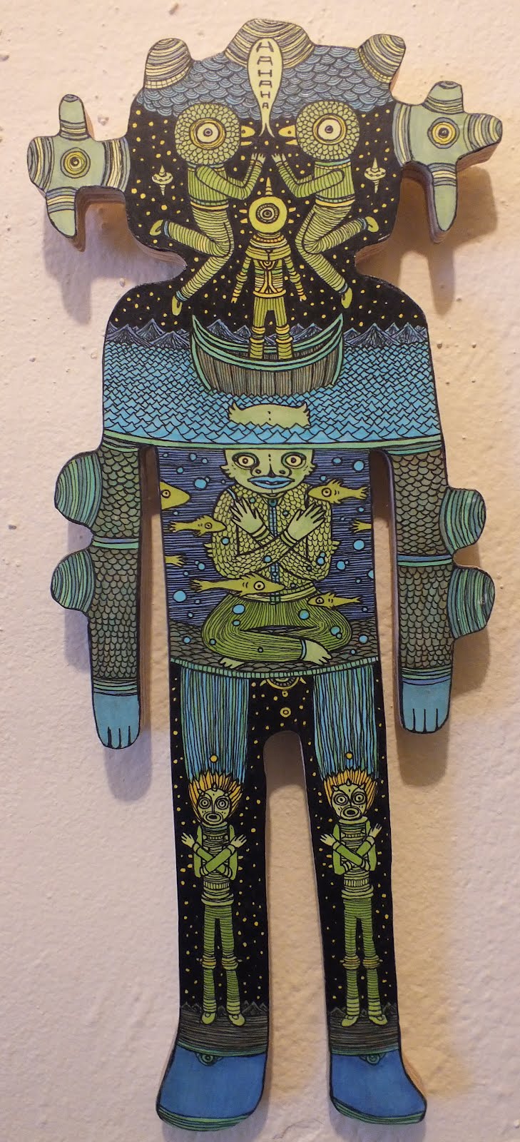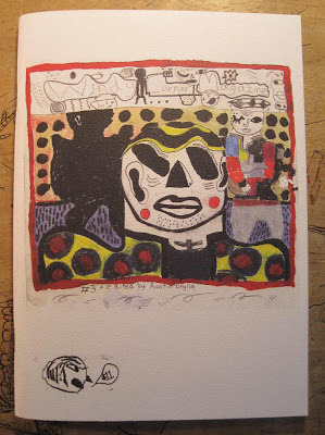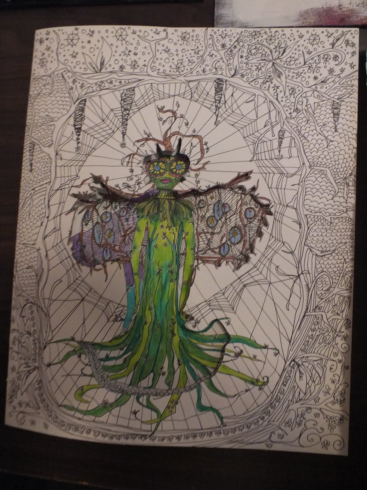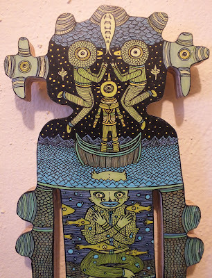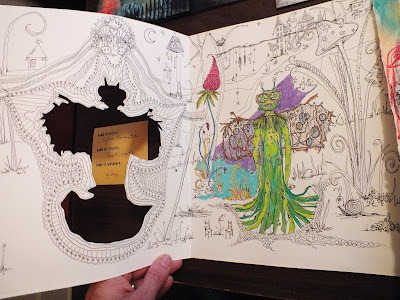 I brought it home and colored it just in time to give it to the curator, Jennifer Parks, to hang in the show. It's the ghost of an Ancient Multi-Dimensional Earth Native, just in case you couldn't tell.