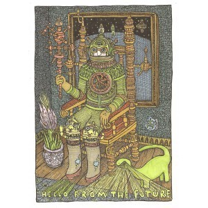 I designed a postcard for 826 LA, a non-profit writing and tutoring center. Every city that has an 826 has a different themed gift shop in front. The Los Angeles one is Time travel themed. You can get my postcard and help support an incredibly awesome place here