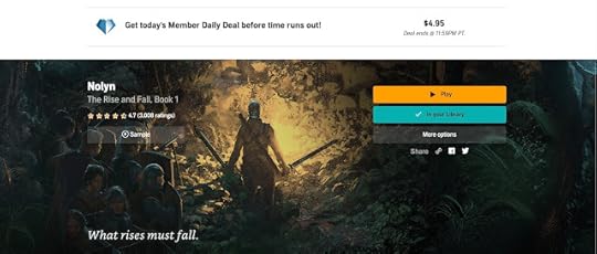 One of the biggest promotions available to audio listeners is the Audible Daily Deal. For only 24 hours, one title is deeply discounted. Well for today only, that book will be Nolyn (Book #1 in the Rise and Fall Series). What's even better is it's narrated by the amazing Tim Gerard Reynolds. Seriously, if you've never heard Tim spin a tale, it's worth $4.95, just for that reason alone!