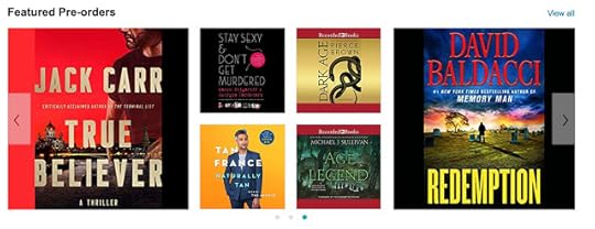 Hey, look what Robin noticed on the main Audible page today. Age of Legend is a Featured Pre-order! Are you all getting excited about the next installment? Is it early sales that is driving this title to get one of these coveted spots? To be honest, I have no idea. But I'm thrilled for the extra exposure. So, if you have already done your audio pre-order, thanks for that. And if you haven't now would be a good time to do so! Age of War made the New York Times Bestseller List, and I think a big part of that was because of pre-orders, can we do it again? We'll see!
