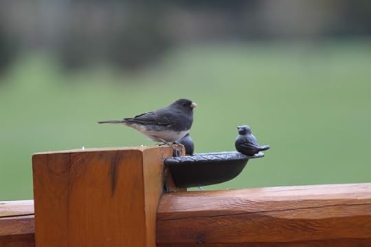 It’s also a good movie. After watching it, the next morning, a bird landed on the railing of my deck next to a feeder my wife had me put up a couple weeks before. My daughter spotted it and got my old National Geographic Pocket Bird Identifier out and concluded it was a Dark-Eyed Junco. I got my DSLR camera, snapped on the 72-200mm lens (the one I recently bought to take on the Rhine Cruise that previous summer) and let her shoot the bird.