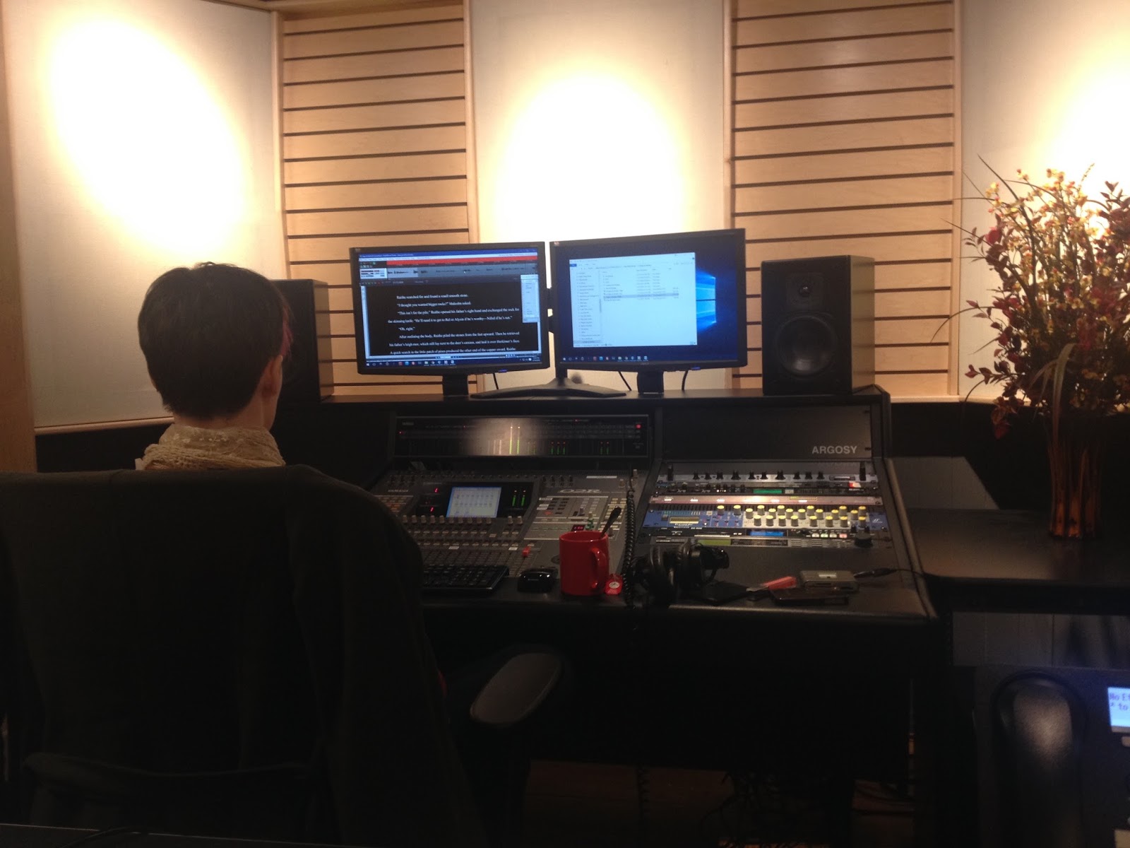 As Tim read, we followed along and stopped him when he mis-pronounced a word. This strikes me as utterly ridiculous given the words are made up. At one point Tim read the phrase Gula-Rhune. He said “Gulla-Rhune” instead of “Ghoula-Rhune” and I stopped him. I explained how I wanted him to change the pronunciation, and he actually looked at me through the booth glass and said, “Oh, of course.” As if he’d made an actual mistake, as if I hadn’t both, made up the word, and its pronunciation. Things like this mess with my mind.