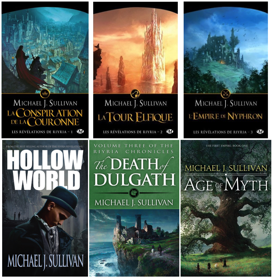 French, Hungarian, & Bulgarian editions of The Crown ConspiracyFrench, Hungarian, & Bulgarian editions of AvemparthaFrench, Hungarian, & Bulgarian editions of Nyphron RisingEnglish edition of Hollow World English edition of The Death of Dulgath English edition of Age of Myth