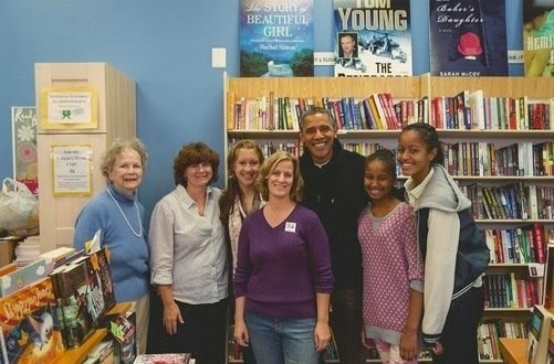 While looking through their calendar of events, I noticed their 4th year anniversary is this month. How exciting! At a time when the huge bookstores are struggling, and fears of Amazon taking over the world run rampant, it's good to see one of the "little guys" who do well by doing it right. Oh, and maybe they aren't such little guys, after all. After all, when the President of The United States of America drops by your store (I kid you not). You are definitely doing something right!