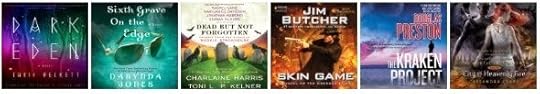 Dark Eden: A Novel by Chris Beckett (multiple narrators)Sixth Grave on the Edge: Charley Davidson, Book 6 by Darynda Jones (Narrated by Lorelei King)Dead but Not Forgotten: Stories from the World of Sookie Stackhouse multiple authors (Narrated by Johanna Parker)Skin Game: A Novel of the Dresden Files by Jim Butcher (Narrated by James Marsters)The Kraken Project by Douglas Preston (Narrated by Scott Sowers)City of Heavenly Fire: The Mortal Instruments, Book 6 by Cassandra Clare (Narrator TBA)