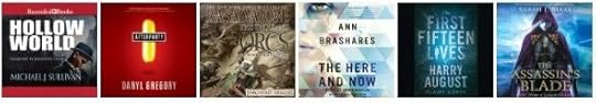 Hollow World by Michael J. Sullivan (Narrated by Jonathan Davis)Afterparty by Daryl Gregory (Narrated by Tavia Gilbert)The Thousand Orcs: Legend of Drizzt: Hunter's Blade Trilogy, Book 1 by R. A. Salvatore (Narrated by Victor Bevine)The Here and Now by Ann Brashares (Narrated by Emily Rankin)The First Fifteen Lives of Harry August by Claire North (Narrated by Peter Kenny)The Assassin's Blade: The Throne of Glass Novellas by Sarah J. Maas (Narrated by Elizabeth Evans)