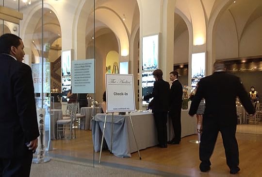 After years of watching the Academy Awards I couldn't help thinking, so that's what they feels like. I was also disappointed that they didn't say Tim's name. Maybe they didn't have the time to add, "Narrated by Tim Gerard Reynolds," but I wished they had. The award really was for him. I just wrote the book, he's the one who brought the story to life. He was the reason I was at the gala at all. At least they had his picture and name on the big screen.