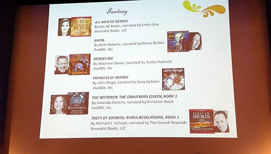 They were still listing the nominees. In the auditorium with us were actress Anne Hathaway, nominated for narrating The Wonderful Wizard of Oz,and Ellen Kushner, author of Swordspoint. Other nominees that evening were the likes of Michelle Obama, Dustin Hoffman, Samuel L. Jackson, Margaret Atwood, and even Bram Stoker. And in that multitude of amazing talent and skill, I heard the words: “ ...and Theft of Swords, by Michael J Sullivan.”