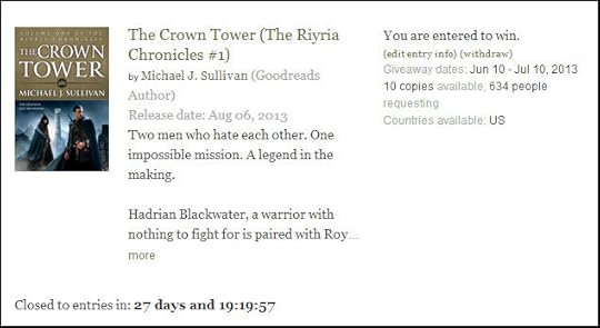 Hello all, Robin again, stealing Michael's blog to make some announcements. We are just two weeks from the release of The Crown Tower, which is pretty darn exciting. Since signing with Orbit, Michael and I have learned a lot about the ins and outs of traditional publishing. Going into this second launch through a major press we know much more than we did the first time around.
