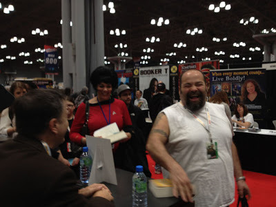 We made the trip then had to fight the crowds waiting in droves on the sidewalks to get in. Racing for the secret author's entrance--the blue entrance as it was known--we jumped in got our badges and scrambled to find the Orbit booth. I arrived one minute late for the signing and felt a bit like a rock star walking out on stage before a waiting crowd.