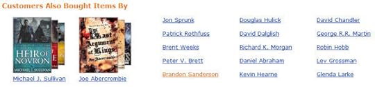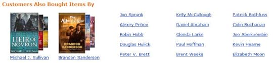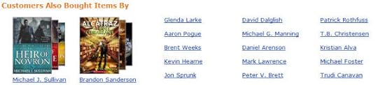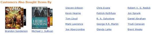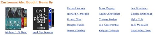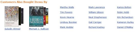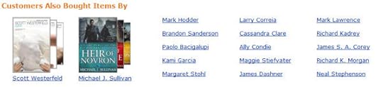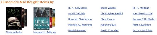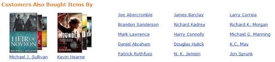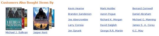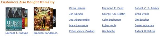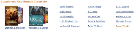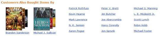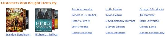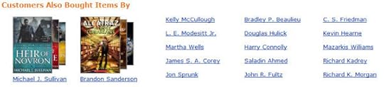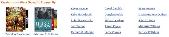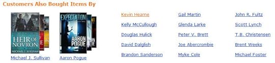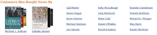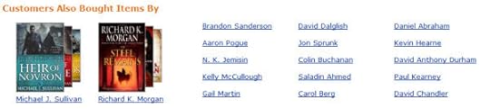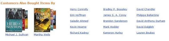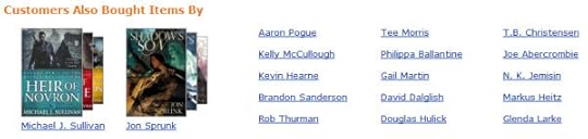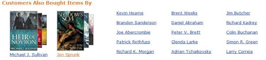 Mark LawrenceJon SprunkDouglas HulickMazarkis WilliamsAt the time I think I had sufficient sales to appear on about two dozen author's pages in the Customers Also Bought listings. It was a nice beginning and I was happy to see that I was starting to find readers of other authors also buying my books.