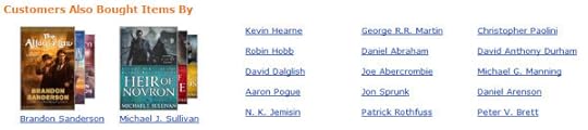 I'm never sure how to interpret these charts. They feel more like astrology than astronomy. Just because I am on another author's page doesn't mean I'm doing as well as they are, the number of variables are legion, and it doesn't account for non-Amazon sales. But back when I was self-published I remember being thrilled when I hit the 16th spot on Sanderson's and Rothfuss's lists and I don't think I ever climbed higher than 14 so to be 3rd (and behind such industry heavy weights as Martin and Hobb) is pretty surreal.