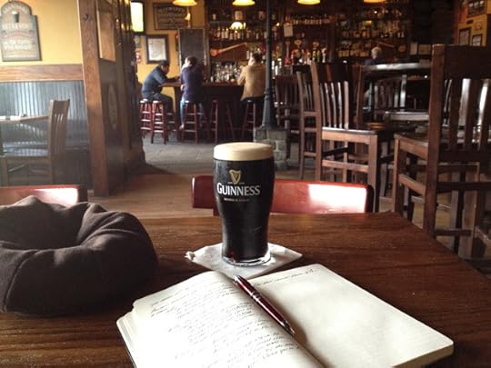 My cap, my notebook and pen, taken one Wednesday at the local O'Sullivan's pub where I am sometimes visited literally by Royce and Hadrian.