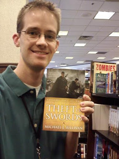 The release of Percepliquis and Heir of Novron are only days away. Exactly how many? The timing is a little funky due to the realities of the publishing business. This is not a flip-the-switch kind of thing. It is more of a general, it happens when it happens, kind of event. I'm confident Percepliquis will be released darn close to the 16th because stores aren't involved, so that isn't much of an issue however, Theft of Swords was officially supposed to be available on November 23rd , but on November 13th Bryan Young, a gentlemen in Houston, took this picture …