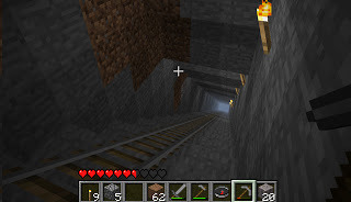 There is one more thing, and this is where the spice comes in. In this world of Minecraft, there are days and nights. This cycle works just like it does in the real world except that a day lasts only ten minutes, thankfully so does the night, because at night, monsters come out. They come in a variety of types. Zombies, skeletons (who use bows and arrows,) spiders that can climb walls, Creepers that have a nasty tendency to sneak up behind people and explode. Most monsters catch fire in sunlight like a Buffy vampire, but not all, and the challenge of the game is to create a defense against the night. So as the game begins you are Charleston Heston in Omega Man and have ten minutes to build yourself an adequate shelter before night falls. After that you'll be left blind and defenseless in the darkness as monsters roam the world. This is no easy feat for the newbie, as just learning how to gather resources, make simple tools, and construct a hut can take more than ten minutes.