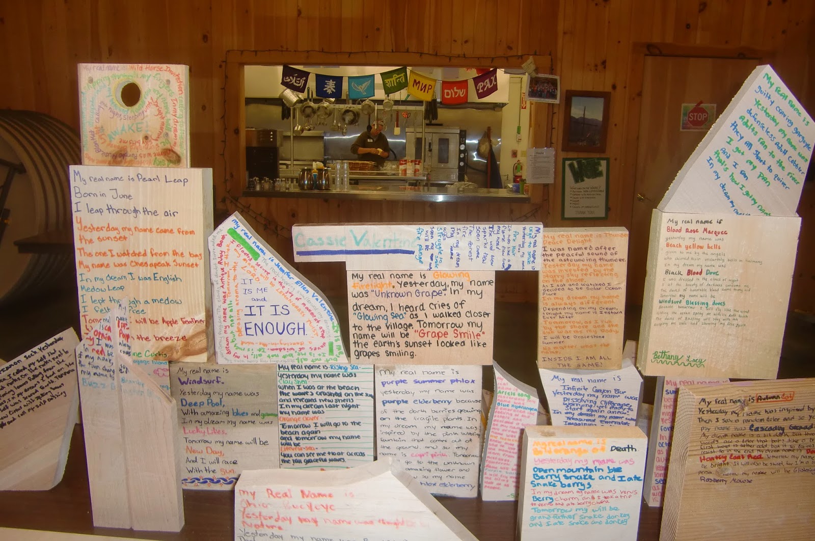 It was a fun exercise, and not too academic for a summer activity. Two Deans and other camp staff jumped right in and wrote poems, too! In one hour we had built a poetry wall.