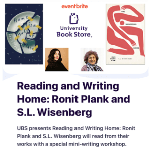 -On Thursday, March 9th I’ll be at University Bookstore on the Ave with Sandi Wisenberg for Reading and Writing Home from 6:00-8:00 pm. We’ll have books for sale and signing. This is a free event that you can register for here.