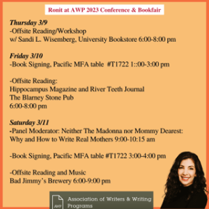 And if you’re at AWP Seattle and would like to pick up a copy of my memoir When She Comes Back or my new collection, Home is a Made-Up Place, you can find me at the Pacific MFA table at the bookfair #T1722 on Friday 3/10 from 1:00-3:00 pm and Saturday 3/11 from 3:00-4:00 pm