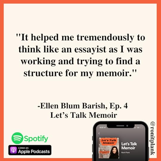 Facebook Twitter InstagramThe post Let’s Talk Memoir – Season 1, Episode 4 ft. Ellen Blum Barish appeared first on Ronit Plank.