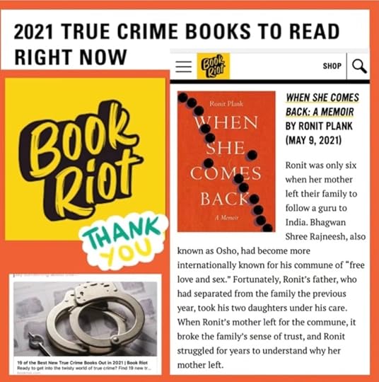 It was a great surprise to see that my new memoir, When She Comes Back, has made the Book Riot List of Best True Crime books of 2021! It might seem strange that my book is on this list, but I can thank the late guru Bhagwan Shree Rajneesh and his sidekick Ma Anand Sheela for this distinction since they make up part of my story and my family’s history.