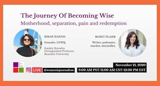 This Saturday I will be Kiran Nazish’s guest on an Instagram Live with her organization Women in Journalism at 9 AM PST. We’ll be talking about parental separation, the power of listening, how writers reach hidden spaces, and my forthcoming memoir When She Comes Back. I hope you’ll join us! Please head to @womeninjournalism on Instagram and click on the icon to attend this Live, this Saturday morning 11/21 at 9:00 PST. Hope to see you there!