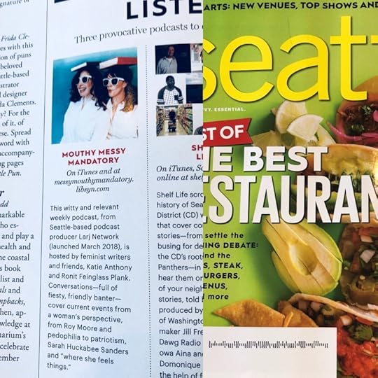 Mouthy/Messy/Mandatory, the podcast I host with Katie Anthony and produced by Larj Media, is featured in the current issue of Seattle Magazine! If news, pop culture, feminism, and many many tangents are your thing, you’ll love us!