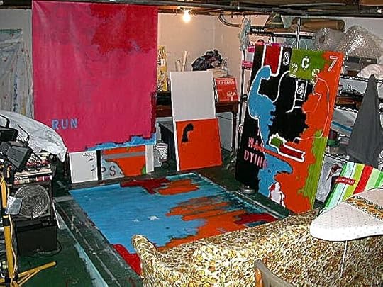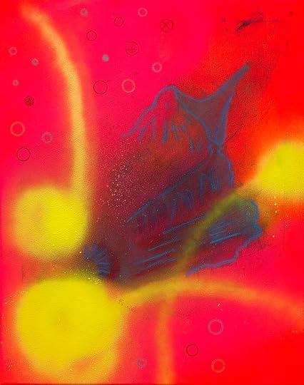 While I often photograph the various stages or phases of a painting in-progress, I usually do not share those pics outside of critique. I am still working on this piece, which is 30x22 inches. So far acrylics, spray paint, gouache, marker and colored pencils have gone into it. It’s on Stonehenge Aqua paper. I think that I have one more idea to add, but I’ve been taking time to look/think. Thinking with the eye. I’ve had a few ideas for a focal point, but I keep coming back to the astronaut. We’ll see. Thanks for visiting. I hope you enjoy the shop, the galleries, the playlists and everything else.