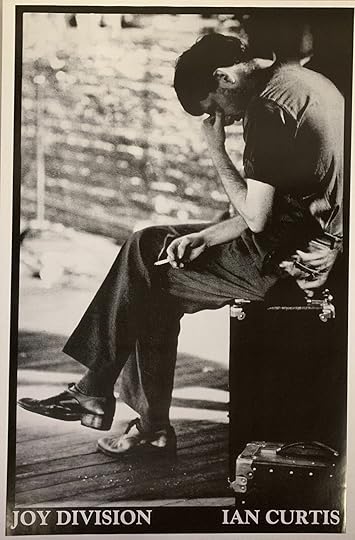 “Do you think there could be hunters out here?” We have not heard any gun shots in the silently roaring distance. Nor have we encountered any sudden movements crushing the brush among the trees. No stampedes through the woods. From the folds of his trench coat, Stuart produces the postcard which reveals the festering cause of his concern. The glossy, dog-eared postcard is a black and white image of Ian Curtis sitting in a studio or warehouse on what appears to be a guitar amp, cigarette in one hand while he pinches or soothes the bridge of his nose with the other. Stuart and Nigel share a cult-like affinity with the former lead singer of the defunct band, Joy Division. Only all too frequently are we subjected to Stu’s drunken lamentations of the fact that he will never witness a live Joy Division concert. Repeatedly, night after night, he dives into the lyrics of Joy Division’s songs for the foreshadowings of Ian Curtis’ suicide. He maintains that somebody should have seen it coming. He is bitter and angry and hurt. Defending the other members of the band, Nigel is more generous. They were young and stupid, he argues. They were drunk and high all the time. The band was catching fire. “I want to see Nigel,” Stuart announces. “Somebody should go find his ass.” His gesture of disbelief includes the whole woods in which we are lost. One might interpret the flowing message scribbled on the back of the postcard to appear unhinged but it basically fits the general description of how Stuart normally characterizes Nigel’s letters. There are a few harmless observations of the mundane aspects of his daily life as a grunt in the copier room of a large D.C. law firm, a couple of snide remarks about the lawyers with whom he is forced to interact. But no abstract expressionistic smears of ketchup or blood this time. No mutilated Molson bottle caps. No alarms, unless Stuart is reading into Ian Curtis’ isolated, forlorn image on the front side of the postcard.