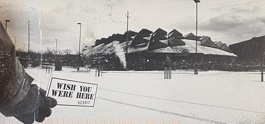 I received this postcard in the mail today from former schoolmate and author, Gordan Young, who lives in San Francisco. Gordie grew up in one of the Flint Civic Park neighborhoods. He wrote a memoir—Teardown: Memoir of a Vanishing City. Recommended! I have a signed copy. This postcard was printed in 1988 by the Greater Flint Arts Council. The photographer: Kenneth A. Hannon. The image is an iconic, loaded one for any Flint or former Flint resident who is over forty-five years old, and there are no doubt younger well-informed Flintstones who would recognize it. As I turned the postcard over in my hands, I winced and chuckled, chuckled and winced. In true young East Side fashion, I never paid to get into that place, but I did climb on top of it with my buddy, Rob, and, what else, we drank some beers. Great shot, Kenneth; great shot to the gut, Gordie! But we’re still standing, aren’t we.