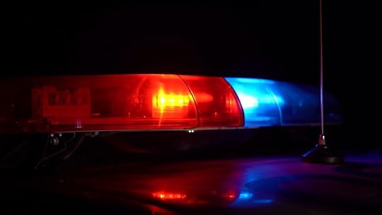 A police car arrives on the scene before we do. The blue flashers bathe the corner in a profound light.