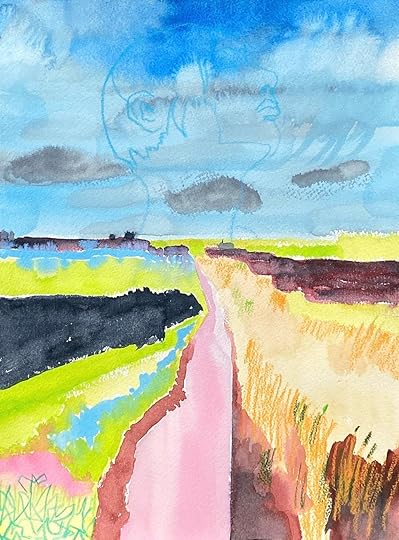 O, watercolors, how I have avoided thee! I really enjoyed making this painting. I learned a couple of things about activating and layering watercolor paints. I also used my new brush pen for the first time. It takes a light hand. It was touch and go…I suspect that without looking at hundreds and thousands of watercolor paintings in museums, galleries, videos and books, I will only be able to progress so far. After all, that is how I got to where I am with acrylics, oil paintsticks and such. I devoured images with my eye and mind for a handful of years. I studied the surfaces of my favorite paintings—the texture, line, shape, color, contrast and dynamics—and questioned how everything was done/might be done. I learned techniques from friends who were artists, read artist interviews, questioned everything my eye took in. I tried to replicate the technique of work I admired. How was this texture created? What were the effects of these lines, these marks, these shapes? What traits made each painting interesting? I took a 2D foundations class at the local community college. Maybe I am about to venture off into an extended study. I haven’t been to the MSU Fine Arts Library to load up with art books in some time. Maybe I will just keep painting, keep watching short tutorials and reels which outline materials and techniques. Maybe a protracted, in depth study—a close reading of watercolors—is just what I need. I don’t know.