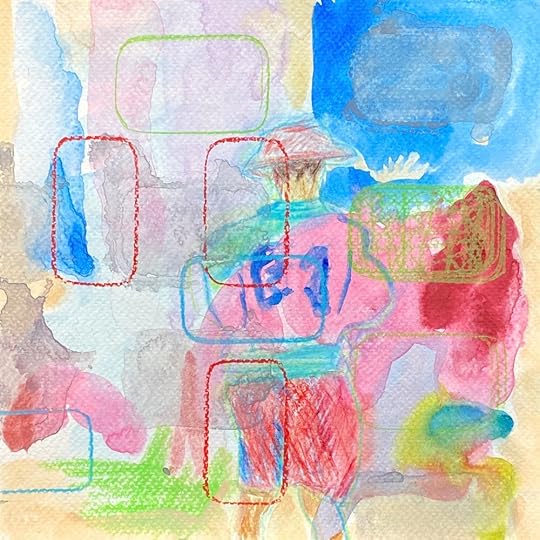 The exploration with watercolor continues. Inspired by the work of various artists, including @diazeeart and @seonnahong. Yesterday—last night, actually—just needed to make a painting. This is what I made. The image of the figure walking away from us is from The Sublime series.