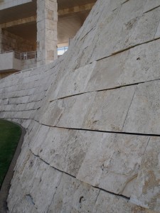 the next earthquake hits. As with the Navajo, the air space allows the stone to resonate and because every panel at the Getty is different, each one produces a different sound. Pretty cool, I think.