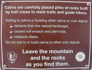 All good advice, which is applicable to anywhere you find cairns, whether in the northeast, the Sierras, or the American southwest. With hiking season on us, this another good lesson in how to lessen our impact on the ecosystems we love to explore.