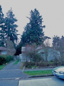 My wife and I bought our house for a simple reason: the massive Douglas firs in the backyards. We had been looking at houses for about two months when we came across the tree-rich yard and the nondescript house. We knew immediately that this was the place. Where else would be find such trees, the biggest of which we couldn’t put our arms around? Now, nearly 15 years later, we know that we made the right decision.
