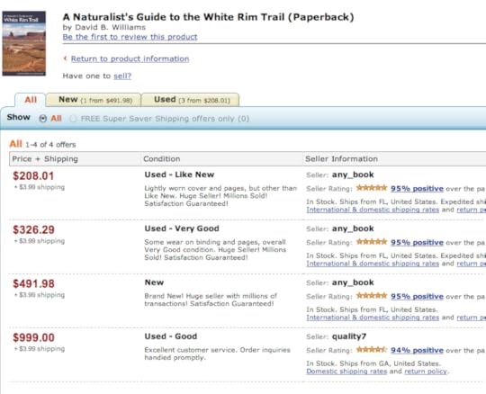 Nothing about geology in this post. I was doing some searching on Amazon when I came across this crazy page of prices for a book I co-wrote and co-published several years ago. I know for a fact that you can buy the book for $9.50 in Moab at Back of Beyond Books. But hey if you want to pony up the big bucks for it, I won’t stop you. Or if you are desperate, I can sell you one for the low, low price of $100. I’ll sign it if you want.