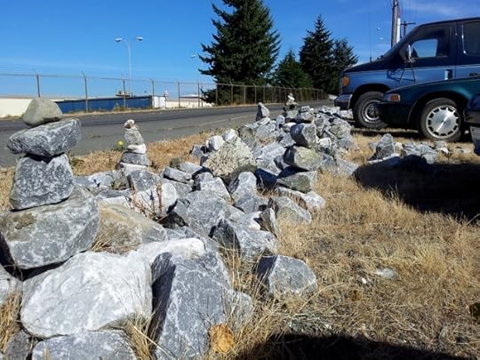 From the Antarctic to the Arctic and from the Himalaya to the Sahara, people have been making cairns to mark their way for thousands of years. But you can also find cairns in less exotic places, such as this parking lot in Bellingham. According to my pal Carol Yoon, Bellinghamsters (what a great term) like to pile up stones close to home. This shot comes from a lot right across from the Georgia Pacific Mill (now shut down) in a lot people can park in for the Saturday Farmer’s Market. One might argue that these aren’t truly cairns, but are more stacked stones. Few would argue with this assessment, but these piles do exemplify several themes in my book: community, connection, and a bit of whimsy. And that’s good enough for me.