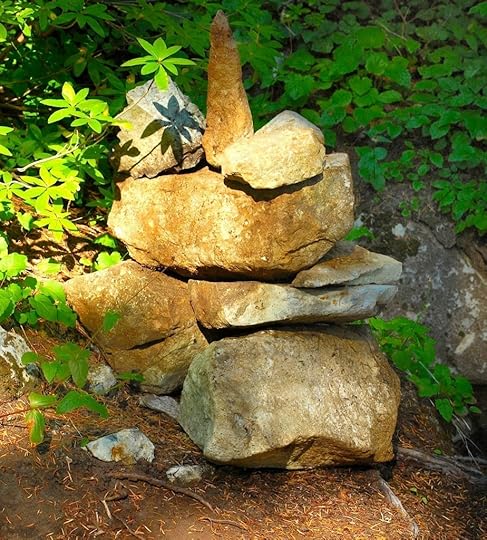 Back to posting my cairn a day. This one celebrates the youth of today. This young gal turns two today and is well on her way to becoming a famous builder of cairns. Please note her careful placement of stones to emphasize color and shape. I suspect that she has been studying Andy Goldsworthy. So those who will be out on the trail in 15 or so years keep your eyes peeled for a rash of wonderful cairns.