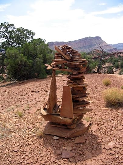 “Unfortunately, I can’t give you too much detail about the cairn. I just remember it was on a not-so-popular trail, maybe even a route, off the west side of the Scenic Drive in Capitol Reef National Park. I really liked it because it was so intricate and well made. Who spent all that time? And, why? I do remember thinking that some park rangers would have knocked it down, but I just took a photo! I can appreciate modern day ‘rock art’!”