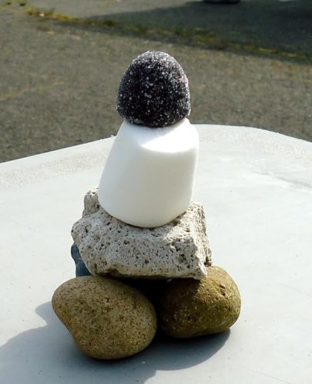 This is a very wee subclass of cairns, those made with unnatural food products. And yet, I think this is quite the ur-cairn, with its classic styling, jaunty tilt to the marshmallow, and carefully placed pumice piece, all capped by a handsome gumdrop. It also illustrates how using a variety of different materials can enhance one’s cairn and make it more noticeable on the trail, not that I recommend using marshmallows in the backcountry, unless, of course, it’s for smores.