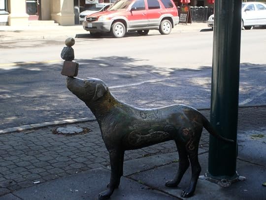 Some may claim that this dog isn’t balancing what one would call a cairn, but I am fairly liberal, and opportunistic, in my understanding of what constitutes a cairn. This whimsical sculpture is in downtown Walla Walla. Titled Thoughts Discovered, it is by Walla Walla artist Brad Rude.