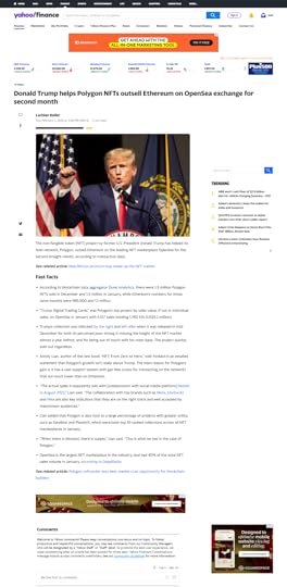 Yahoo Finance: Donald Trump helps Polygon NFTs outsell Ethereum on OpenSea exchange for second month