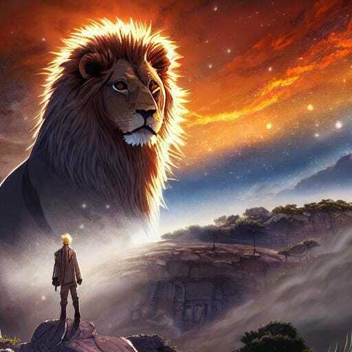 AI Generated artwork: lion fantasy manThe idea of having an interpreter as the protagonist of a story is something that I have been thinking about for a long time.