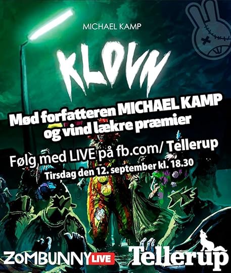 Tellerups første Facebook Liveshow går i luften nu til aften. Det bliver en udsendelse på en times tid med masser af konkurrencer og underholdning, inklusiv forlagets nyeste medarbejder, der skal sminkes som en skræk-klovn, mens jeg er på besøg i studiet og svarer på spørgsmål.
