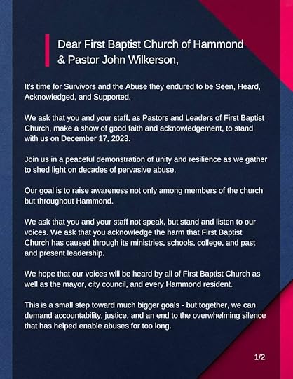 While Wilkerson claims that the church has turned over all materials to the police and that he mourns with all of the victims of the church’s past abuse, he has no plans to listen to those at the protest and encourages “private” meetings instead. For many victims, “private” denotes a lack of transparency that is needed to stop abuse once and for all. As he continues his statement, he moves quickly past the harm done to those abused by those in FBCH leadership. He lays out its ministry’s worldwide impact and popularity (claiming it has had more visitors than any other religious institution “Except maybe the Vatican”). This kind of grandiosity is typical for churches within the Independent Fundamental Baptist movement.