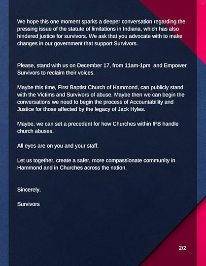 Those still in the Independent Fundamental Baptists (IFB) tend to look at any criticism as an attack from the world and the devil. This WILL be the stance they take regarding the protest in Hammond. Those at First Baptist will see the protest as spiritual oppression. Other IFB churches will take up their cry and pray for their persecuted brethren. How do I know? Because this is what they have always done. Their churches have often claimed that someone in their leadership is being harassed by someone “lying” about them. Sometimes, they will pay for a U-Haul so the leader can move to another location. If the police have gotten involved, the church may even raise money for that person’s defense, sometimes AFTER that person was found guilty in a court of law and sentenced for their crimes.